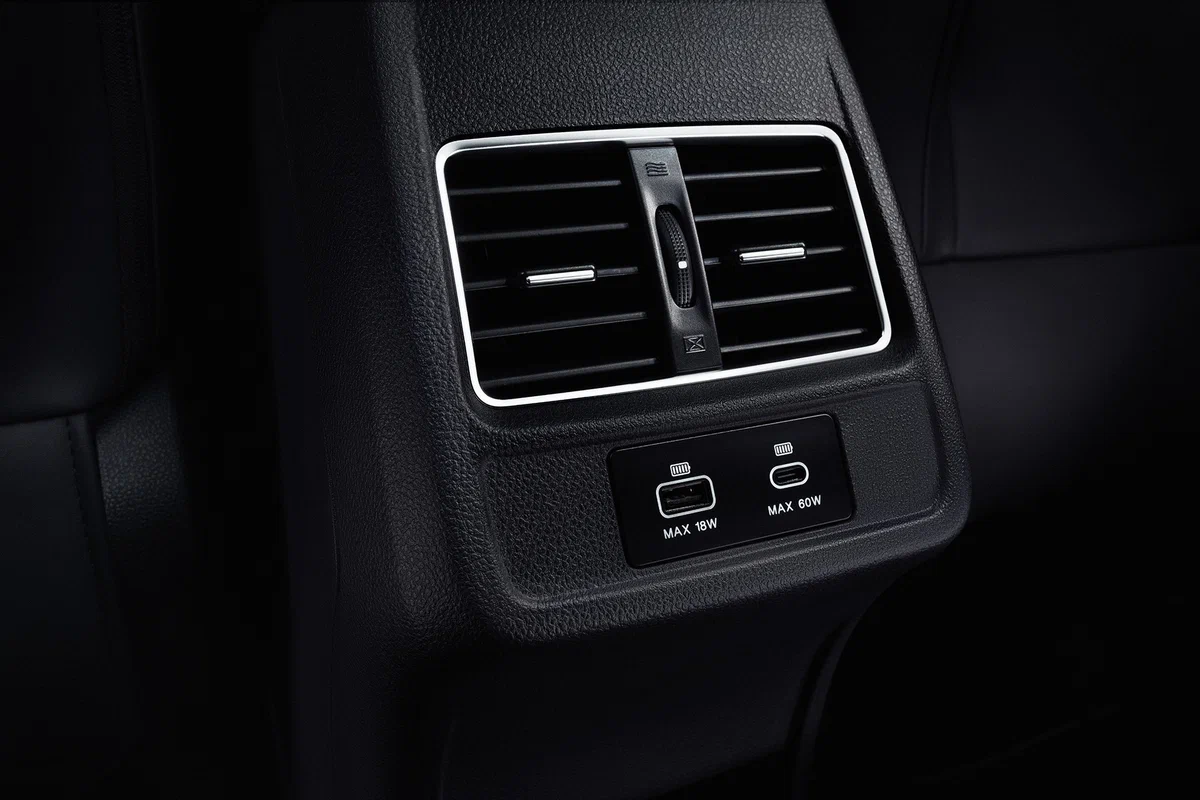 - Порт быстрой зарядки мощностью 60W на втором ряду сидений