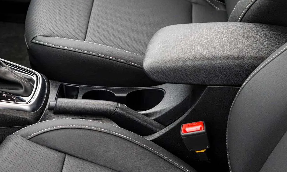 - Сдвигающийся передний подлокотник c боксом и отделкой искусственной кожей